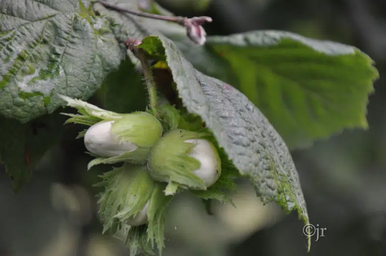 Early in spring the hazel shrubs carry decorative catkins. After pollination the female flowers gradually develop into nuts, enclosed in a protective husk. When the husk opens in autumn the nuts are ripe for picking. This picking season is an important job at the Arboretum in August-September. The local squirrels join in enthusiastically.