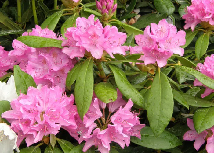 ‘English Roseum’ is an Anthony Waterer hybrid from the 1800s, also known as ‘Roseum Pink’. It has later been registered as an R.catawbiense cultivar and thought to have originated with seed of the hybrid ‘Roseum Elegans’, well-known for its hardiness. The flowers of ‘English Roseum’ are redder than those of ‘Roseum Elegans’, but otherwise the two varieties are very similar. ‘English Roseum’ grows to about 1.5m in 10 years.