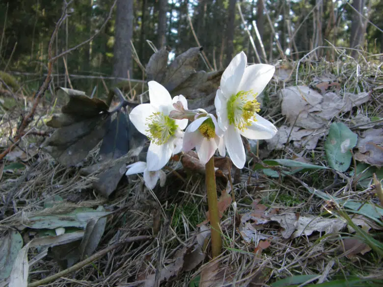 I Mustila har julrosen vuxit redan länge. Den har gjort sig helt hemmastadd i den lundaktiga ljusa tallskogen i Azaleasluttningens omgivningar där den frösår lika som blåsippan.